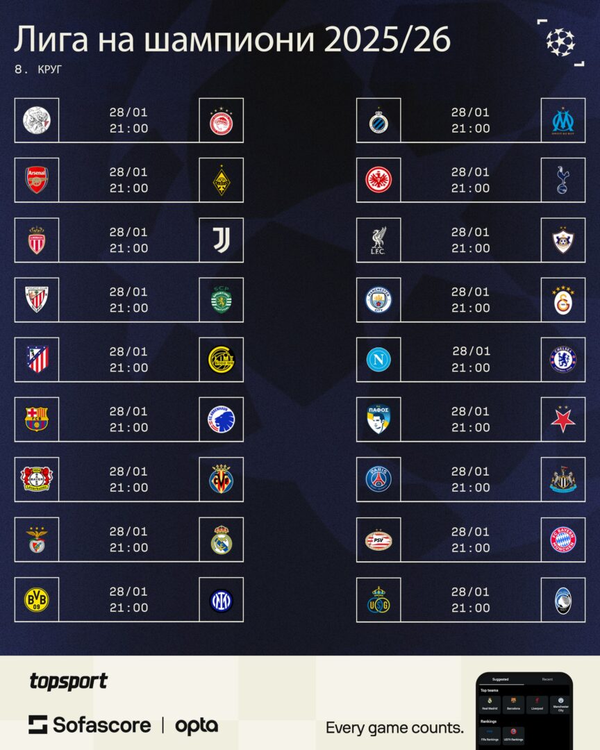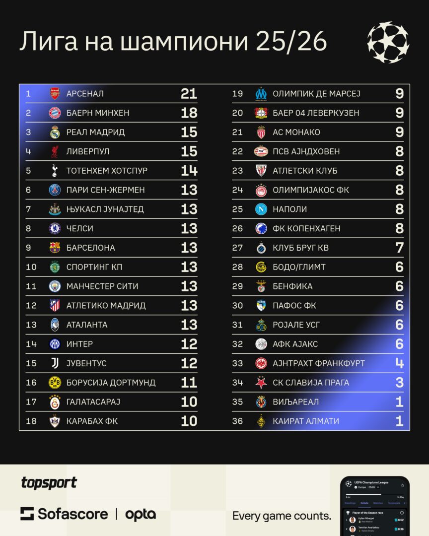 Покрај лидерите во Премиер и Бундес лигата, најмногу шанси за директен пласман меѓу најдобрите 16 екипи имаат Реал Мадрид и Ливерпул.